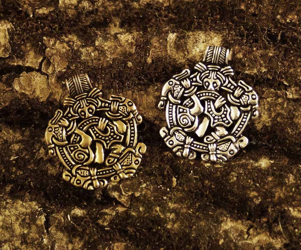 Dieser Wikinger Anhänger im Borrestil wird von einem Greiftier-Motiv geschmückt.