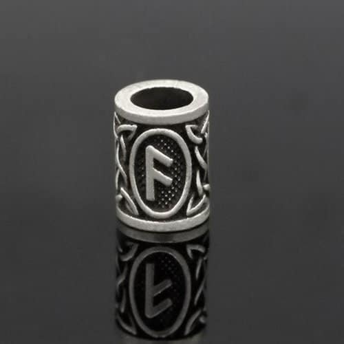 Diese Haar- oder Bartperle mit einer Rune im Stil der Wikingerzeit wurde nach dem germanischen Runenalphabet, dem sogenannten Futhark gestaltet.