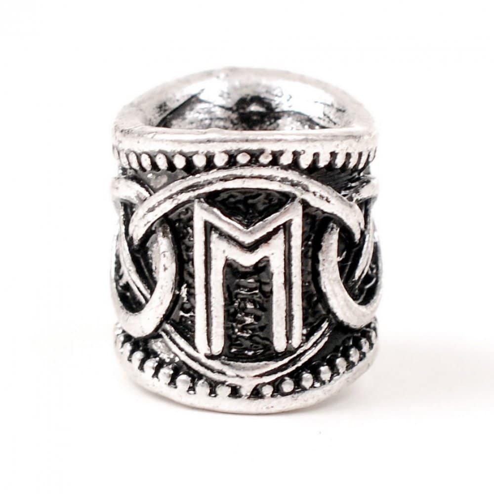 Diese Haar- oder Bartperle mit einer Rune im Stil der Wikingerzeit wurde nach dem germanischen Runenalphabet, dem sogenannten Futhark gestaltet.