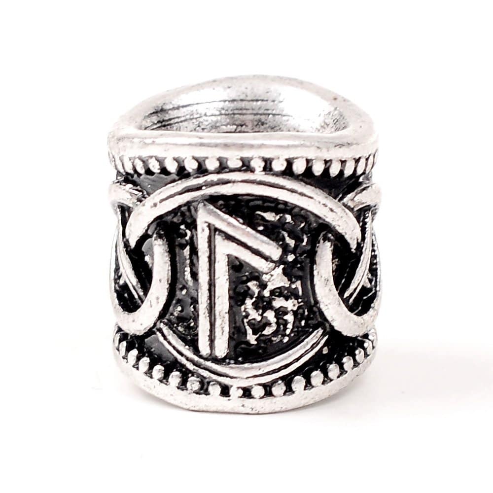 Diese Haar- oder Bartperle mit einer Rune im Stil der Wikingerzeit wurde nach dem germanischen Runenalphabet, dem sogenannten Futhark gestaltet.
