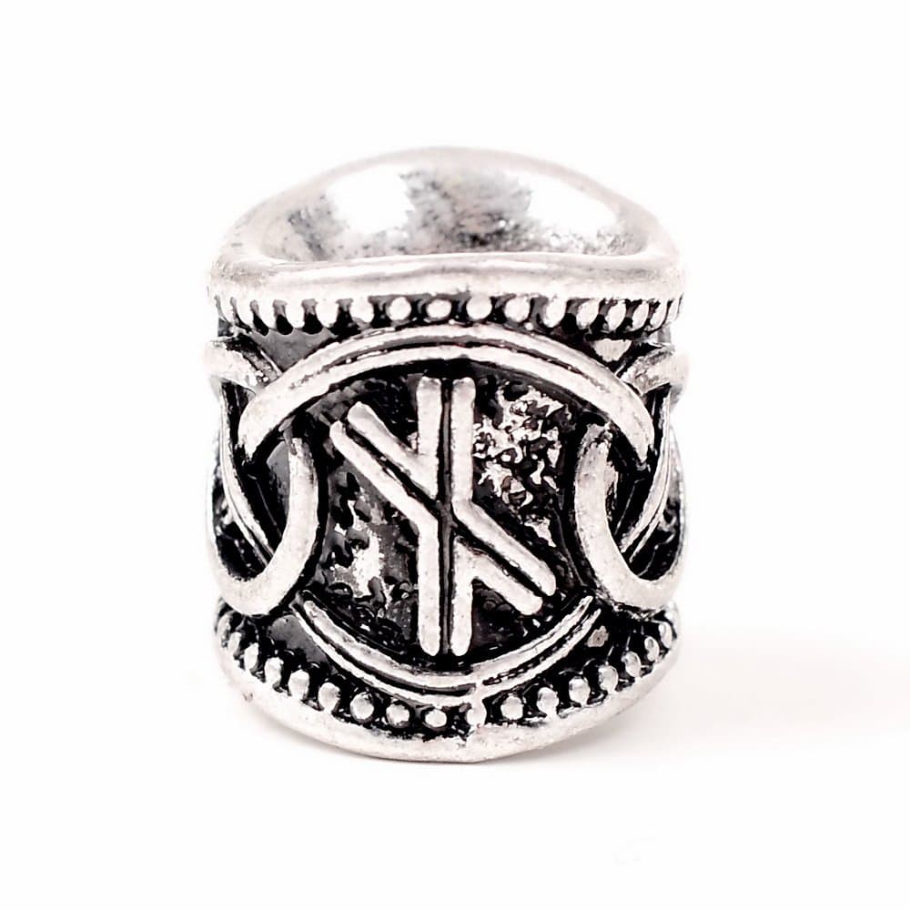 Diese Haar- oder Bartperle mit einer Rune im Stil der Wikingerzeit wurde nach dem germanischen Runenalphabet, dem sogenannten Futhark gestaltet.