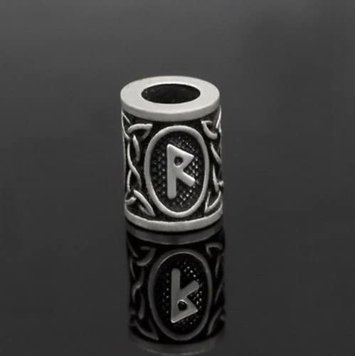 Diese Haar- oder Bartperle mit einer Rune im Stil der Wikingerzeit wurde nach dem germanischen Runenalphabet, dem sogenannten Futhark gestaltet.