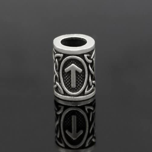 Diese Haar- oder Bartperle mit einer Rune im Stil der Wikingerzeit wurde nach dem germanischen Runenalphabet, dem sogenannten Futhark gestaltet.