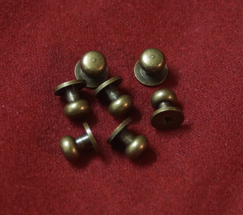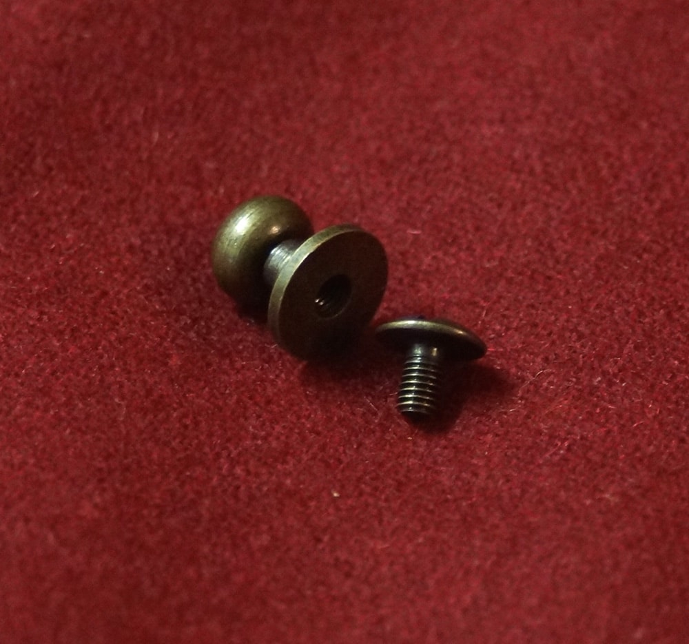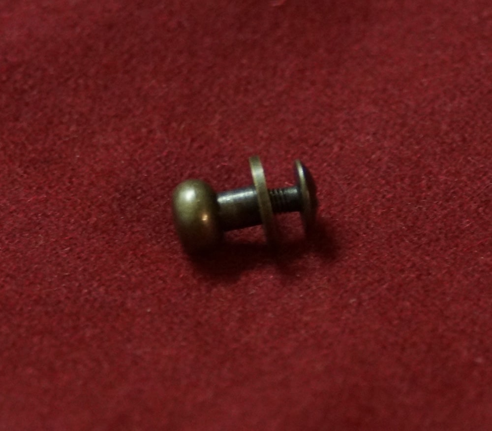 Eine geniale Verschlussmöglichkeit bietet dieser praktische, kleine Messingknopf, der einfach mit einer Schraube auf der Unterseite auf dem Leder befestigt wird.
