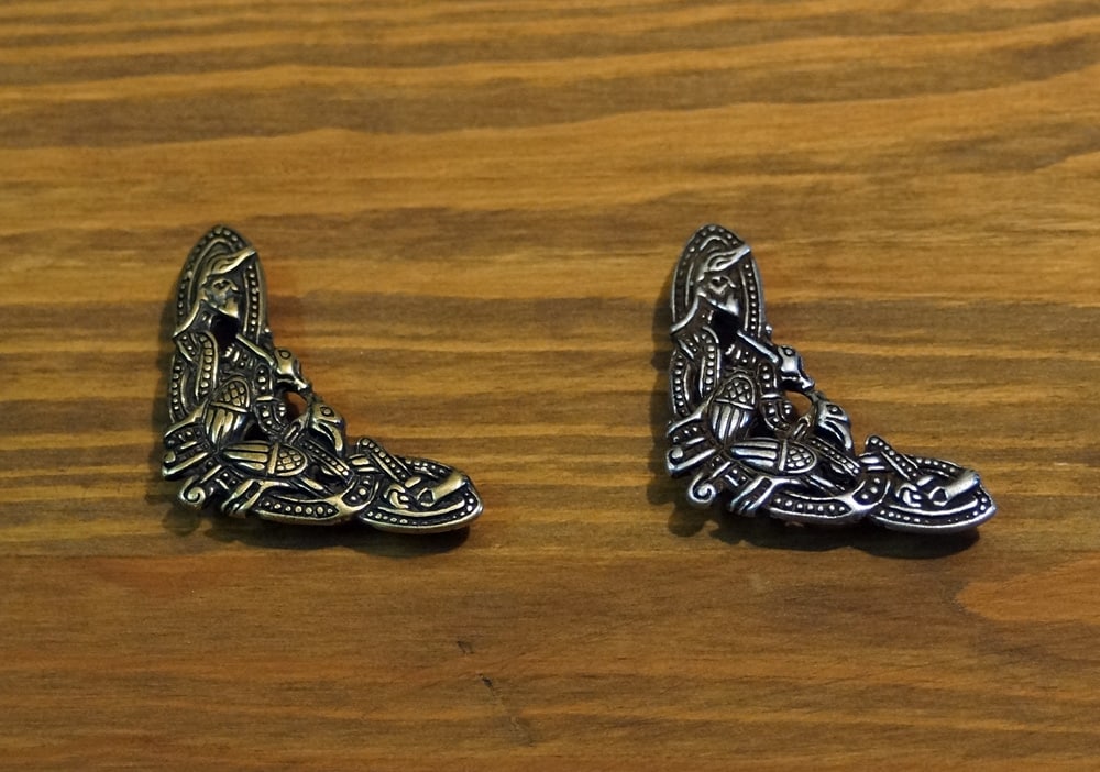 Die aus massivem Zamackguss hergestellten Beschläge weisen auf der Rückseite drei Stifte zur Befestigung auf, und machen auch als Ziernieten für Gürtel eine gute Figur =)