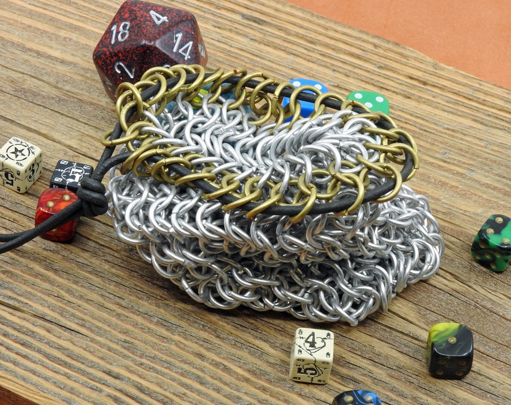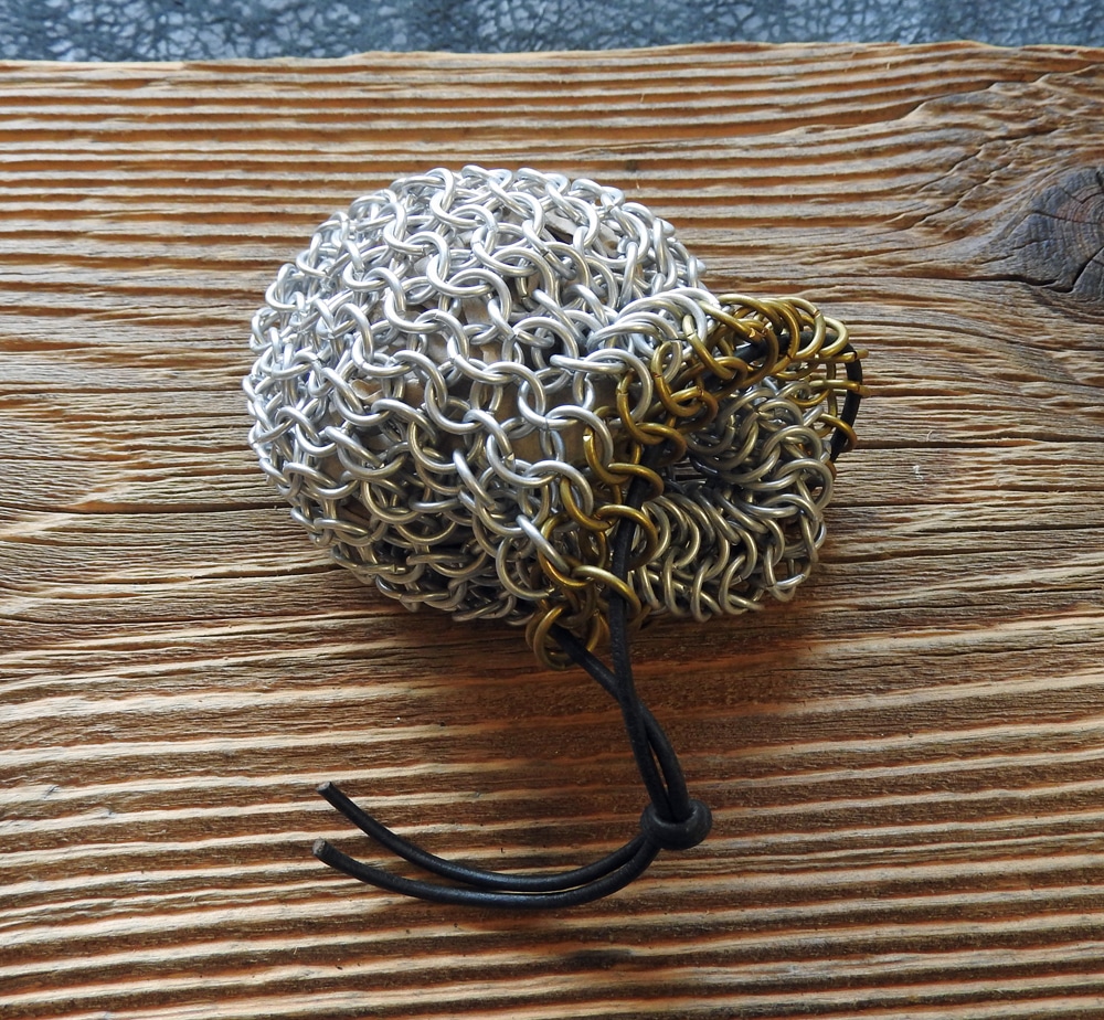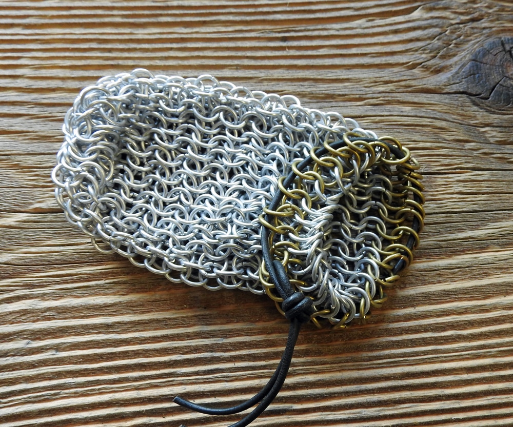 Gefertigt aus vielen Kettenringen erinnert er sofort an ein Kettenhemd aus dem Mittelalter.