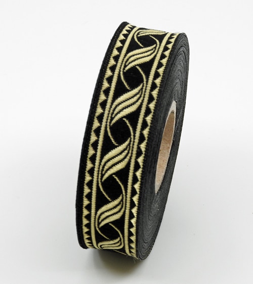 Borte 19mm/10m „Wellenmuster“ – schwarz/gold Borte 19mm/10m „Wellenmuster“ – schwarz/gold
