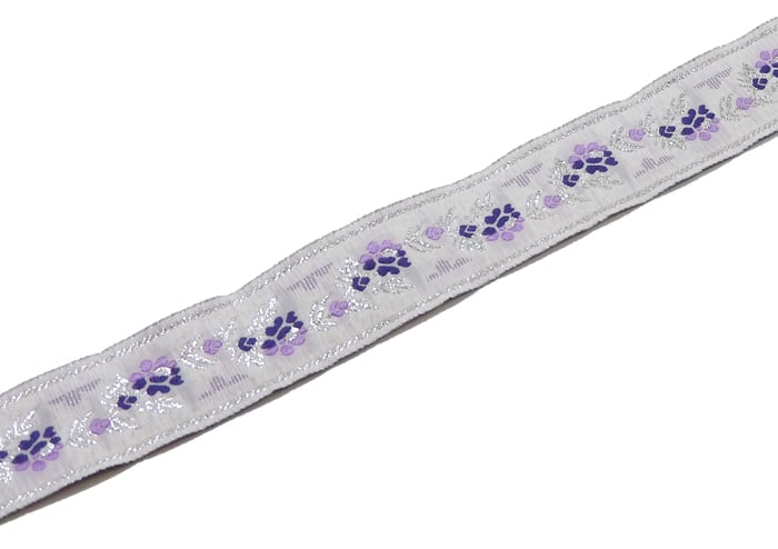 Borte 33mm/1m – „Blume“ – creme/violet/silber / Meterware