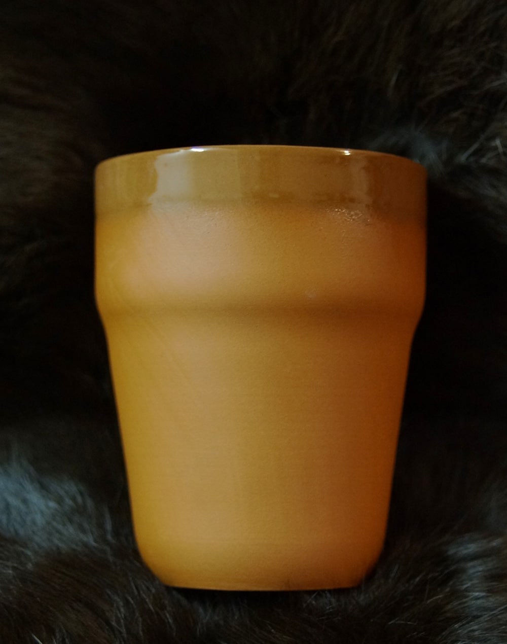 Ein schlichter aber sehr griffiger Becher aus Keramik, den man gut ineinander Stapeln kann.