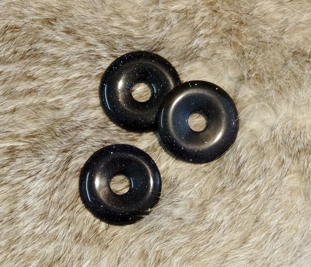 Ein Anhänger in der klassischen runden "Donat"-Form, gefertigt aus einem speziellen künstlich hergestellten Schmuckstein.