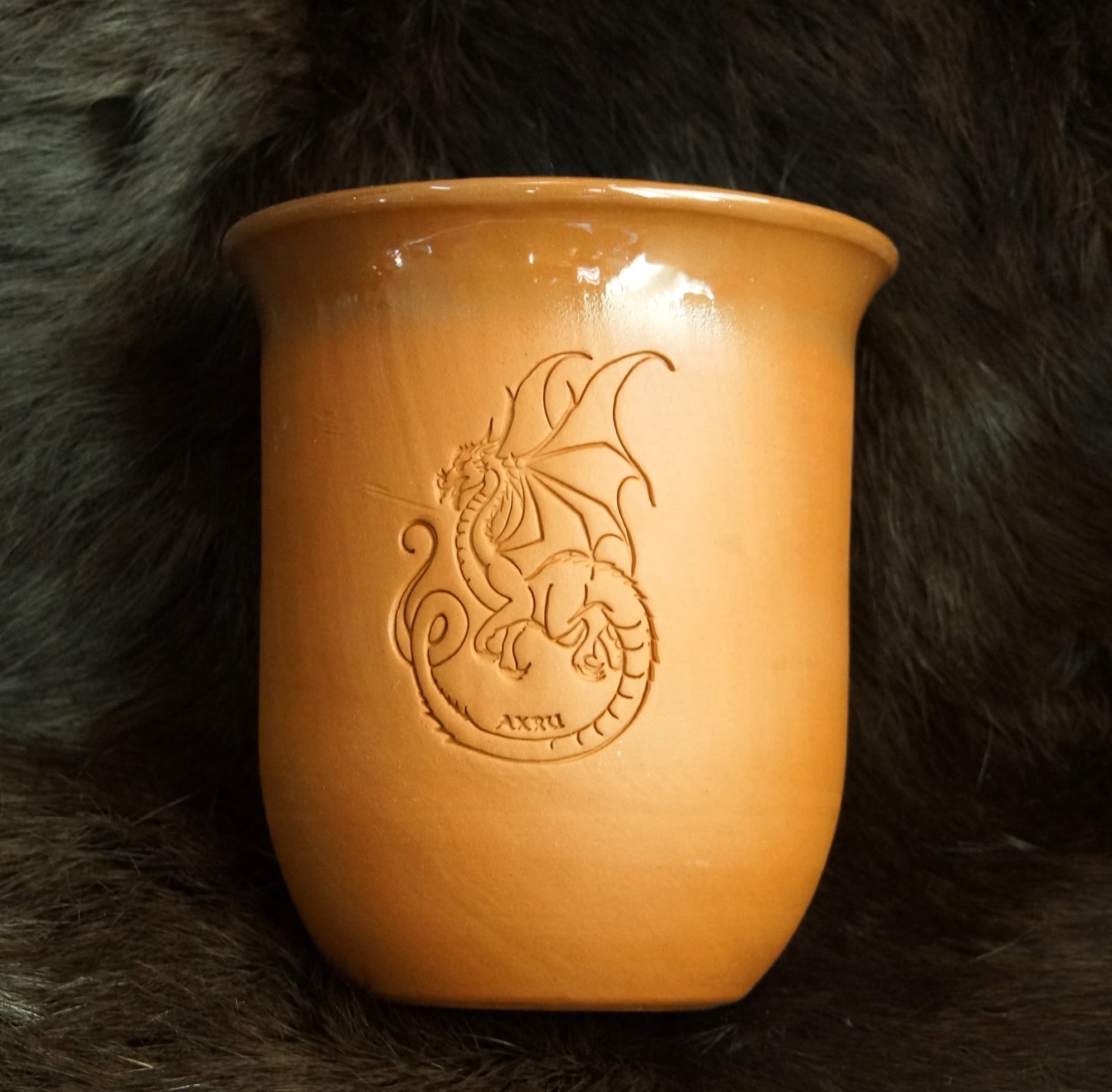 Eine schlichte Becherform, die eine schöne Drachenprägung aufweist.