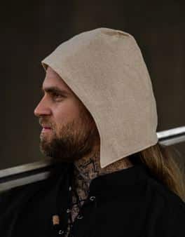 Diese Haube wurde im Mittelalter von Männern getragen. Sie diente als Schutz vor Ungeziefer, verdeckte das nicht immer gewaschene Haar und war wohl auch eine Sache der guten Manieren. Einfache Leute trugen oft nur dies als Kopfbedeckung (vor allem im Sommer). Wer aber etwas mehr Geld hatte, leistete sich einen Hut dazu. Der wurde dann einfach darüber getragen. So wurde der Hut geschont, allfällige rauhe Materialien kratzten nicht auf dem Kopf und man sah (und sieht) einfach "angezogener" aus.