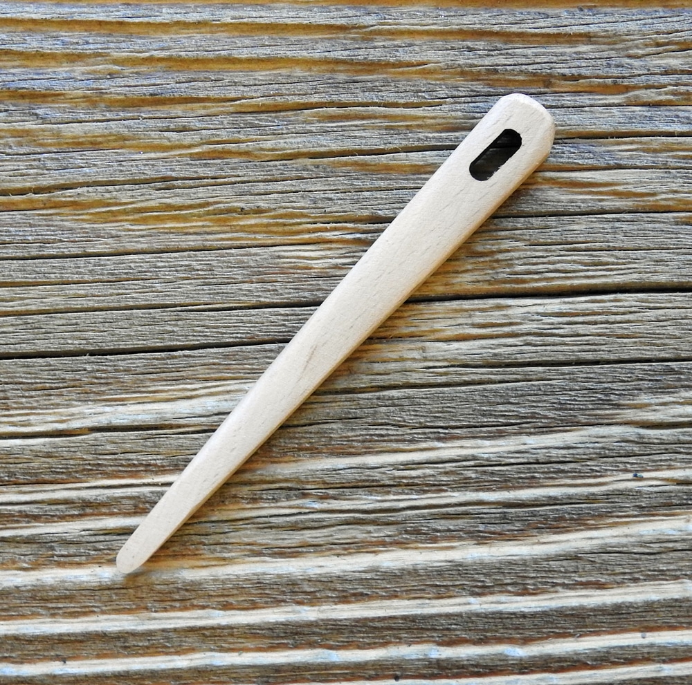 Robuste Stricknadel / Nähnadel fürs Nadelbinden (Nålebinding) aus Buchenholz.