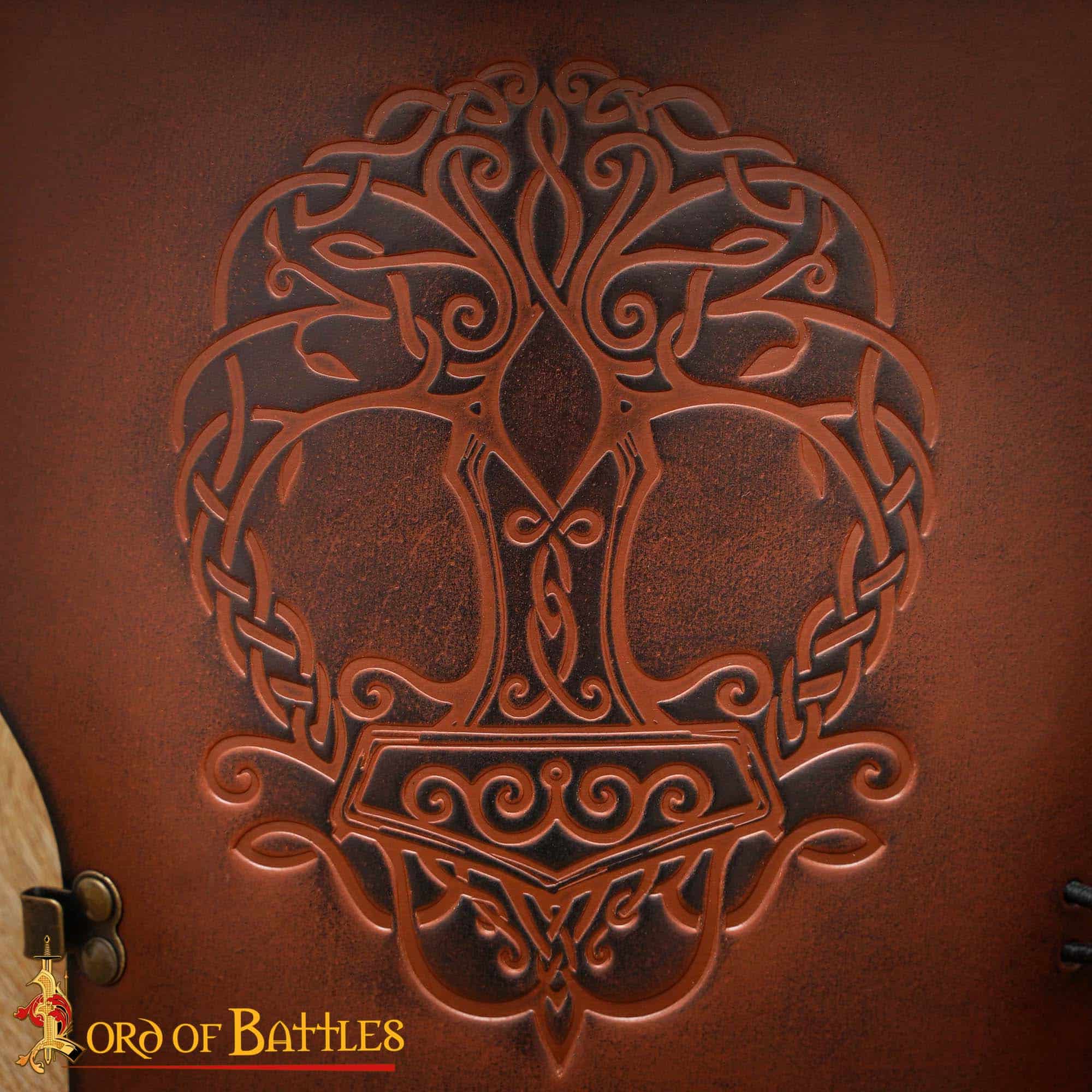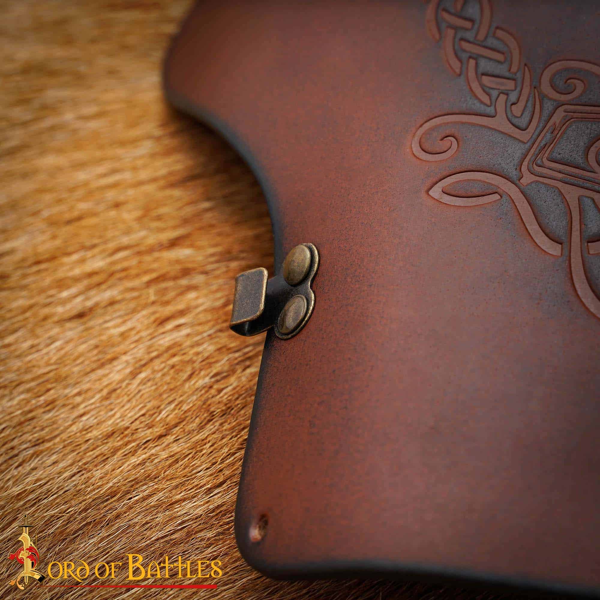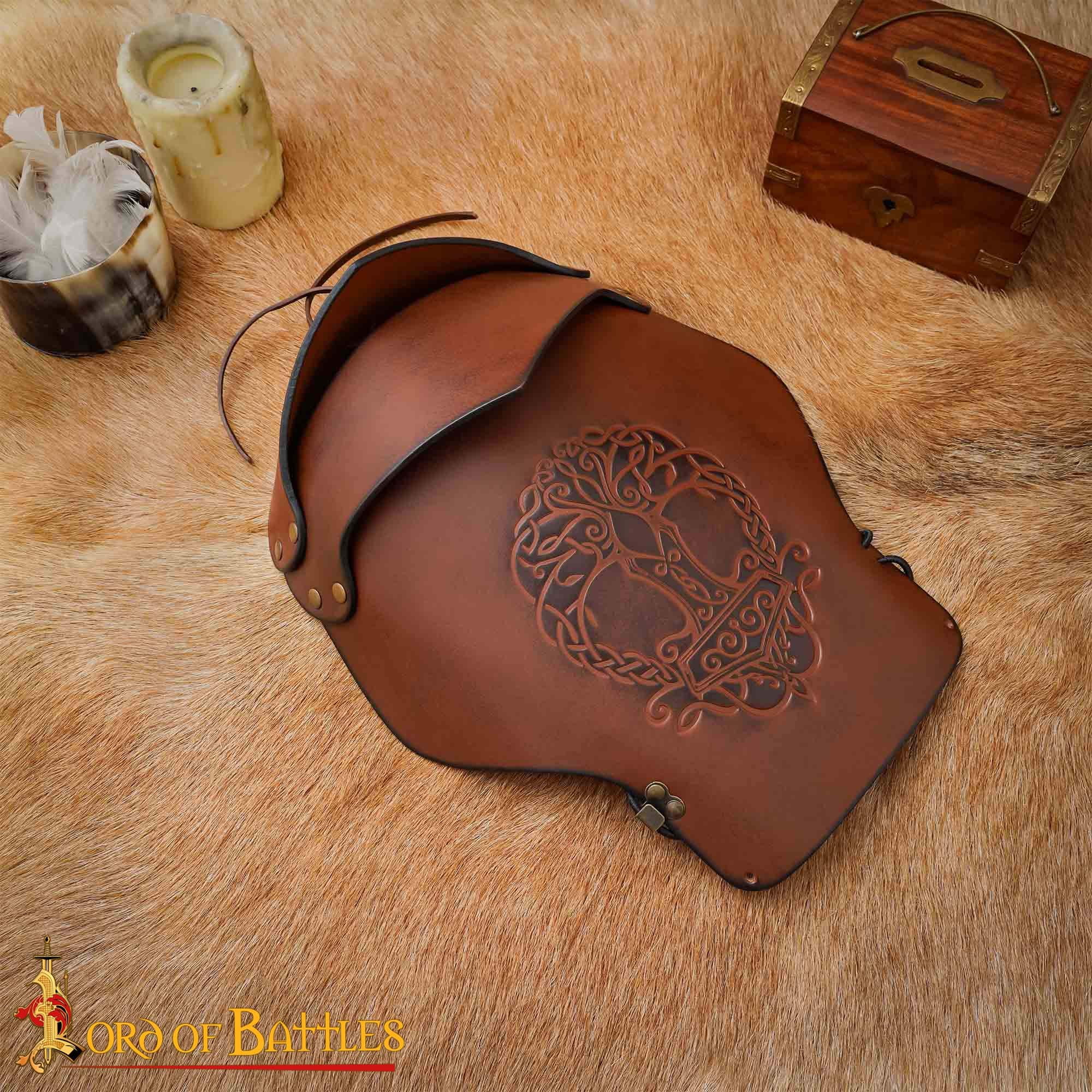 Der wunderschön geprägte Baum des Lebens macht diese Schulterplatte aus Leder zu einem Fantasy Accessoire.