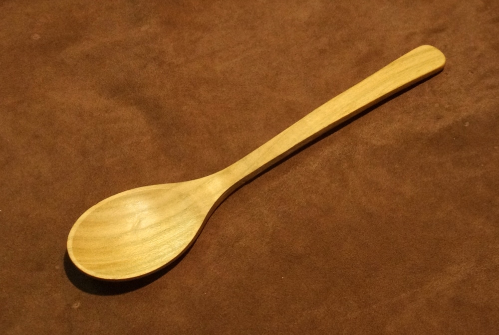Schlichter Esslöffel aus Kirschholz. Bereits geölt, so spart man sich einiges an Arbeit und kann den Löffel sofort benutzen.