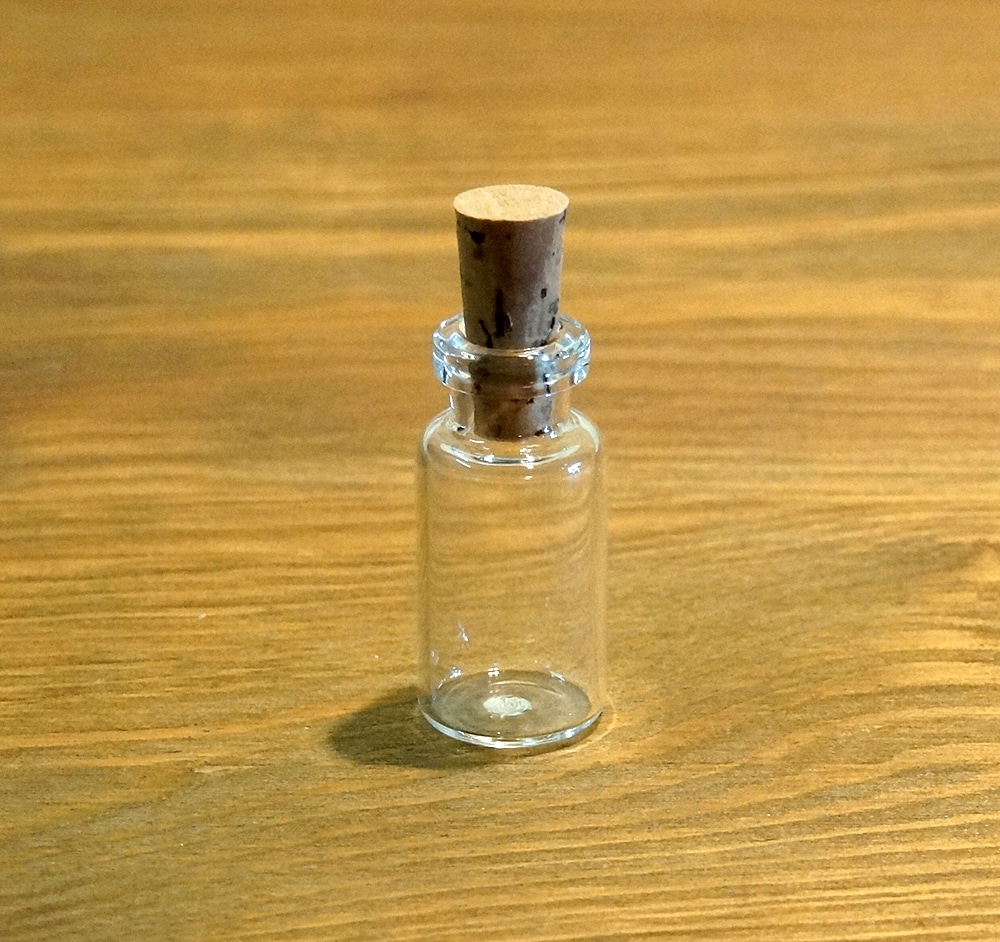 Mini-Fläschchen aus Glas mit Korken.