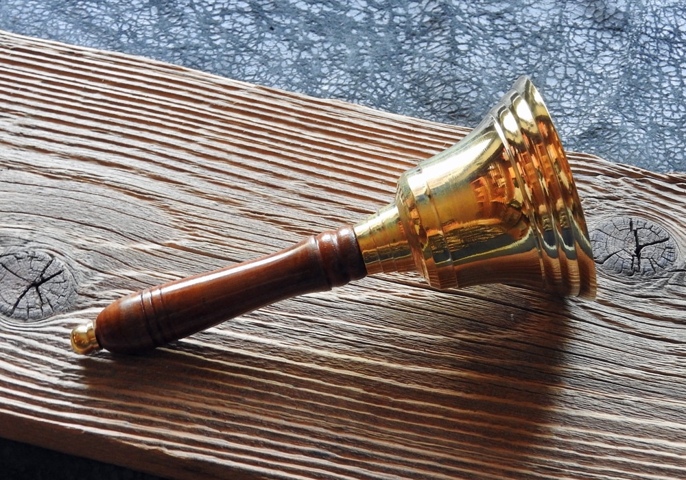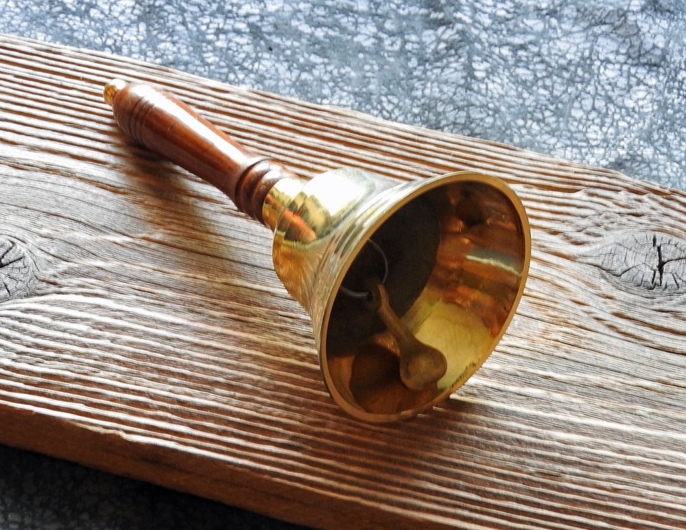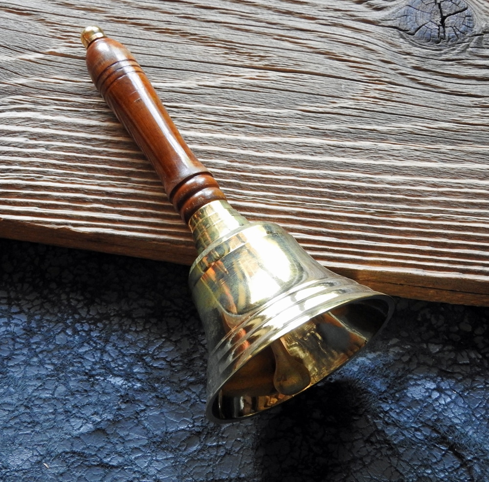 Der elegant geschnitzte Griff hält sich sehr gut in der Hand, damit die Glocke auch ordentlich geläutet werden kann.