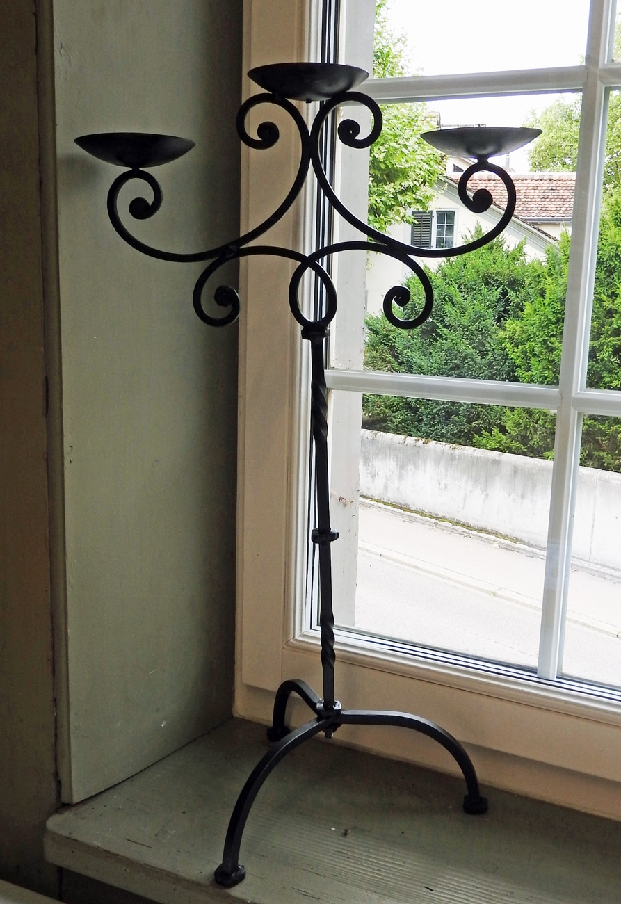 Dieser kunstvoll verarbeitete Kerzenständer ist von Hand geschmiedet und bietet Platz für 3 Kerzen.
