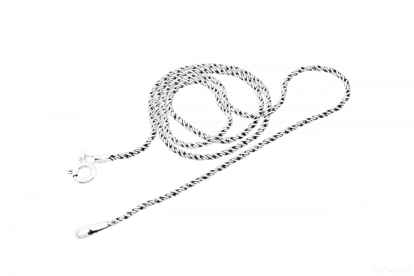 Eine eher dünne Kette für kleine Schmuckstücke, gearbeitet aus 925er Silber mit feinem Muster.