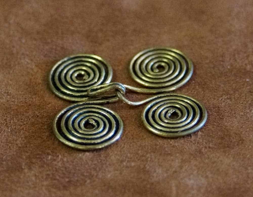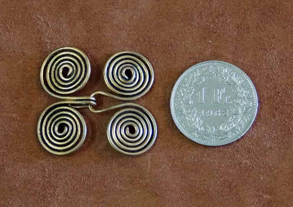 Solche aus aufgerolltem Draht hergestellten Gewandhaken waren bei den Angelsachsen weit verbreitet und wurden anstelle von Knöpfen dazu benutzt, Ärmelausschnitte der Frauengewandung zu schliessen.
