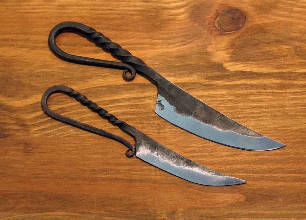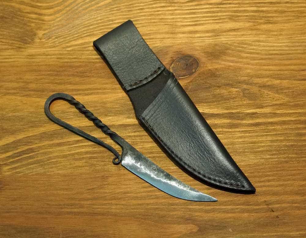 Dieses niedliche, kleine Messer mit kunstvoll tordiertem Griff wird aus einem einzigen Stück Eisen von Hand geschmiedet und orientiert sich an Originalfunden der nachchristlichen Einsenzeit.