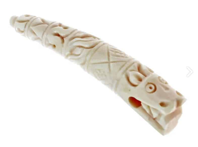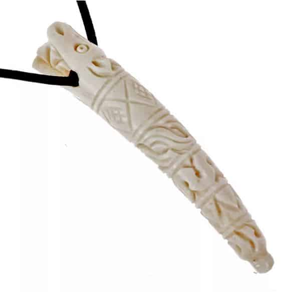 Dieses Amulett ist nach Vorbildern aus der Wikingerzeit von Hand aus Knochen geschnitzt.