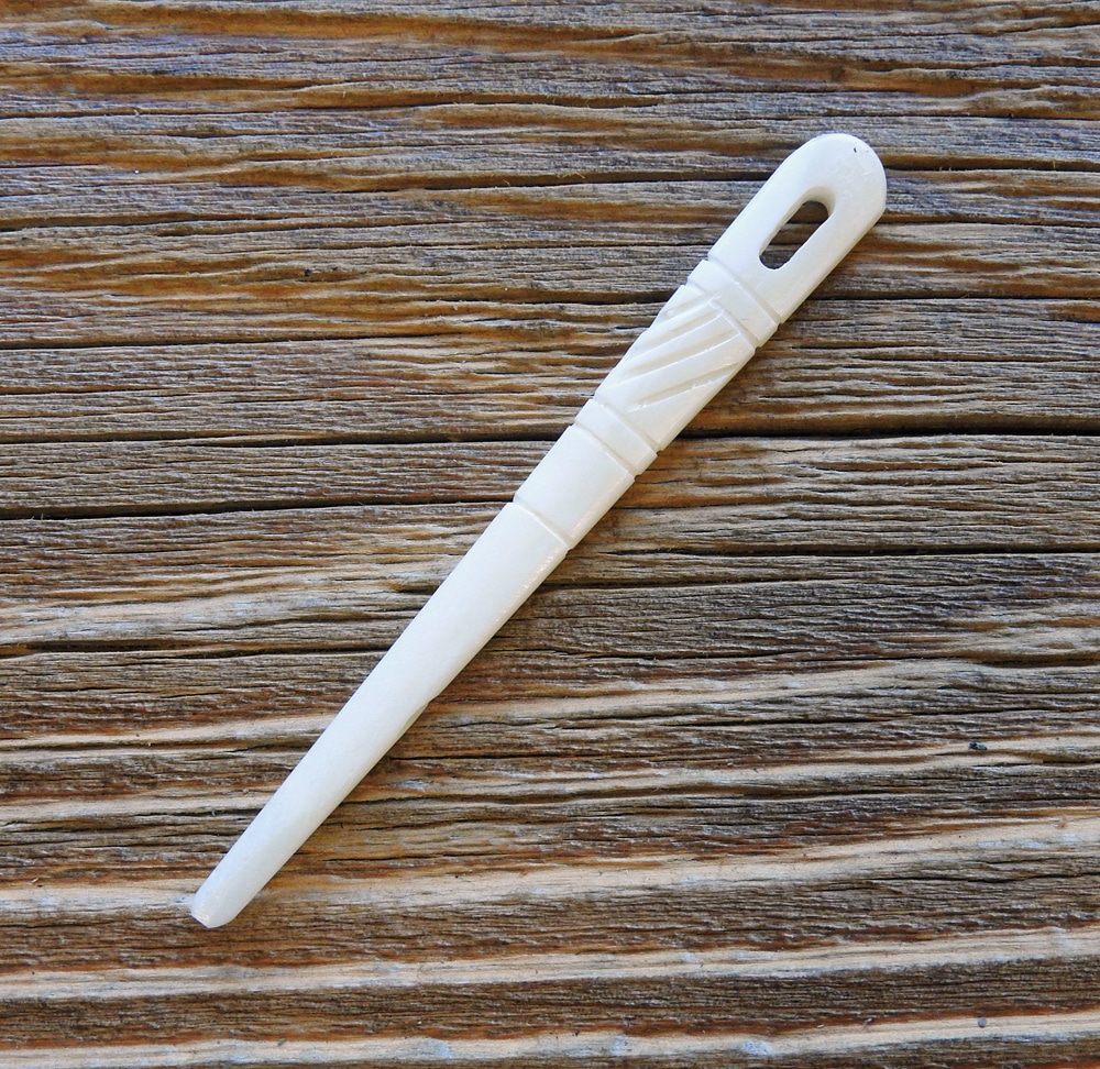 Robuste Stricknadel / Nähnadel fürs Nadelbinden (Nålebinding) aus Buchenholz.