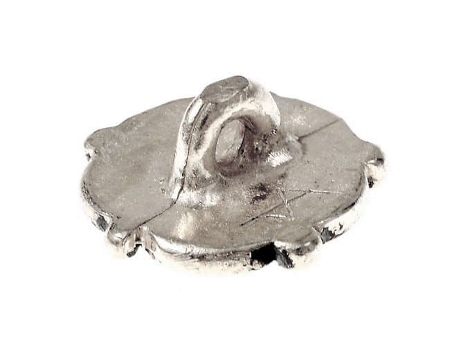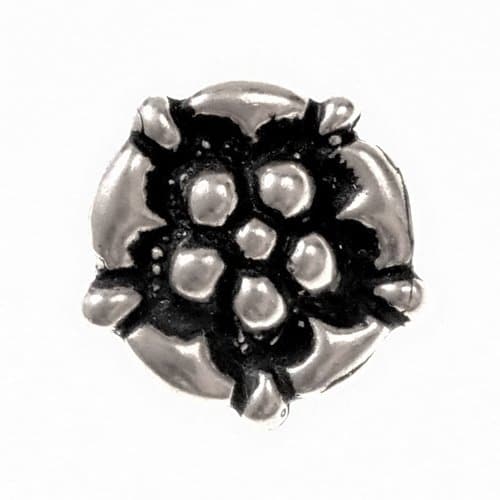 Diese hübsche Replik von einem Zinnknopf in Form einer Rosenblüte ist nach historischen Vorbildern aus dem späten Mittelalter und der Renaissance gefertigt und hat auf der Rückseite eine Öse.