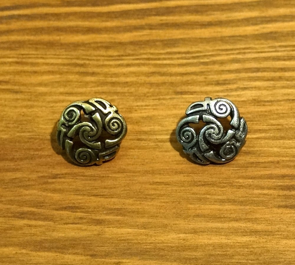 Dieser schöne Knopf aus massivem Metallguss lässt sich sehr gut zum Verschliessen von Mänteln oder Gewändern verwenden.
