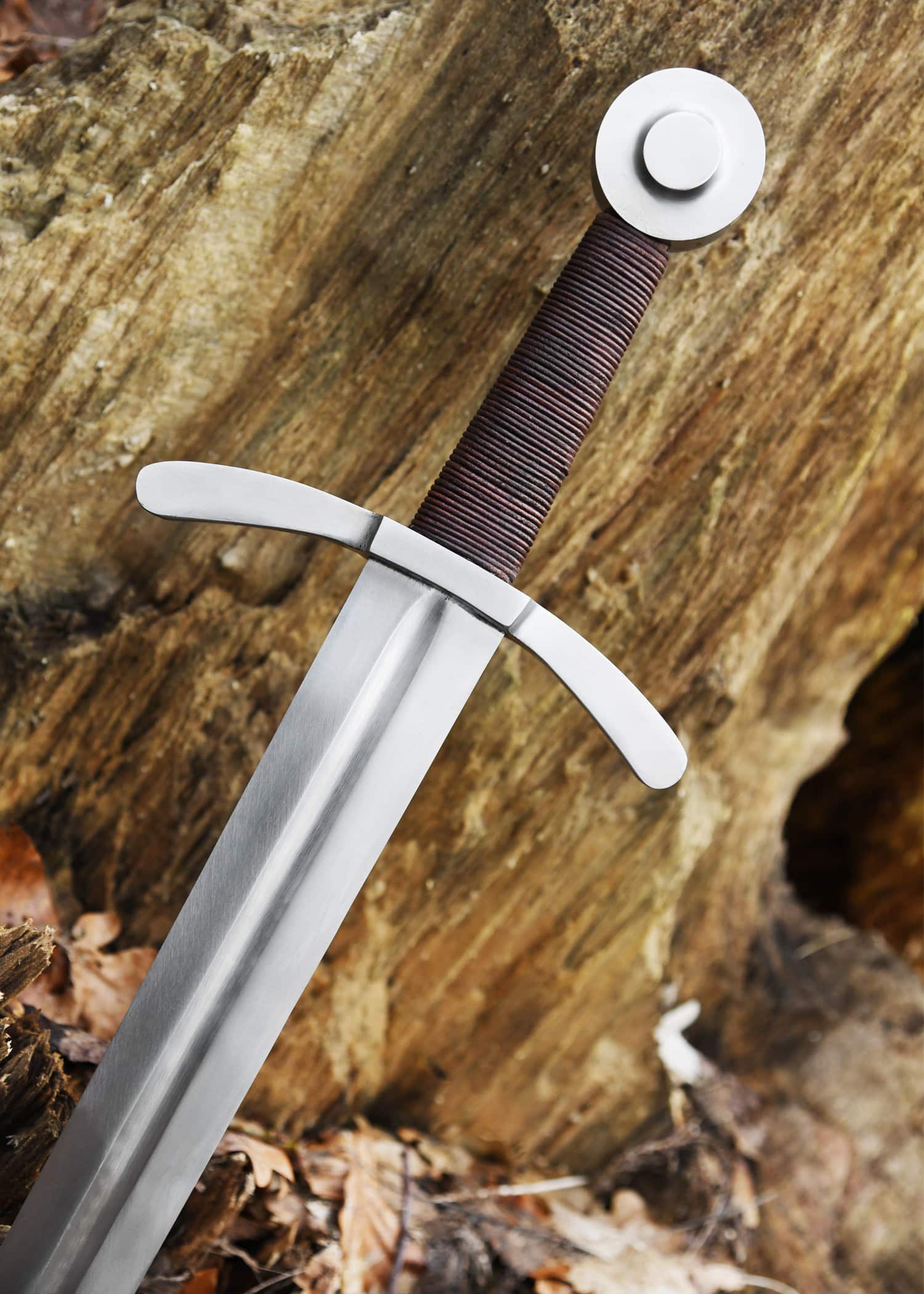 Dies ist die reguläre Ausführung des Kreuzritter Scheibenknauf-Schwertes. Nicht für den Schaukampf geeignet.