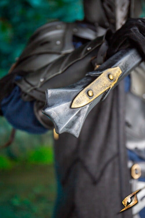 Dieser Morgenstern aus Schaumstoff wurde sehr gut durchdacht. Die "Kette" wurde aus Lederbändern hergestellt und die verschiedenen Teile wurden clever ineinander verbaut, um diesem Morgenstern einen edlen Look zu verpassen.
