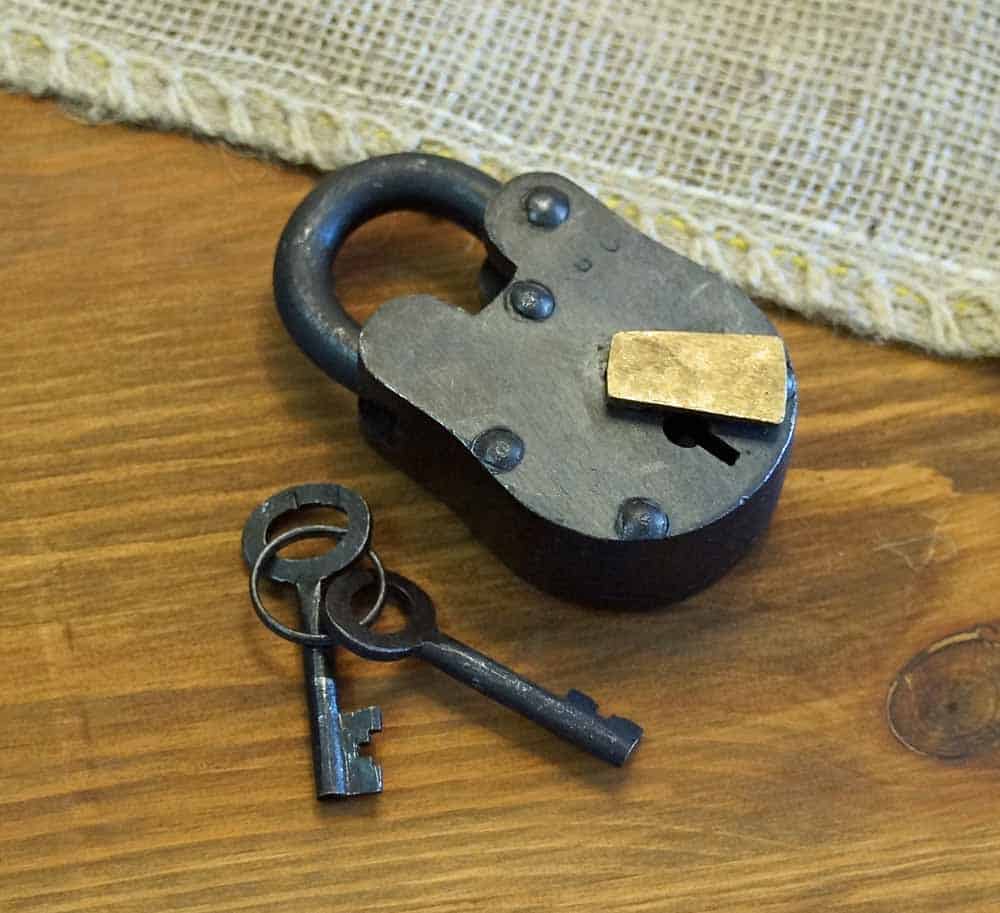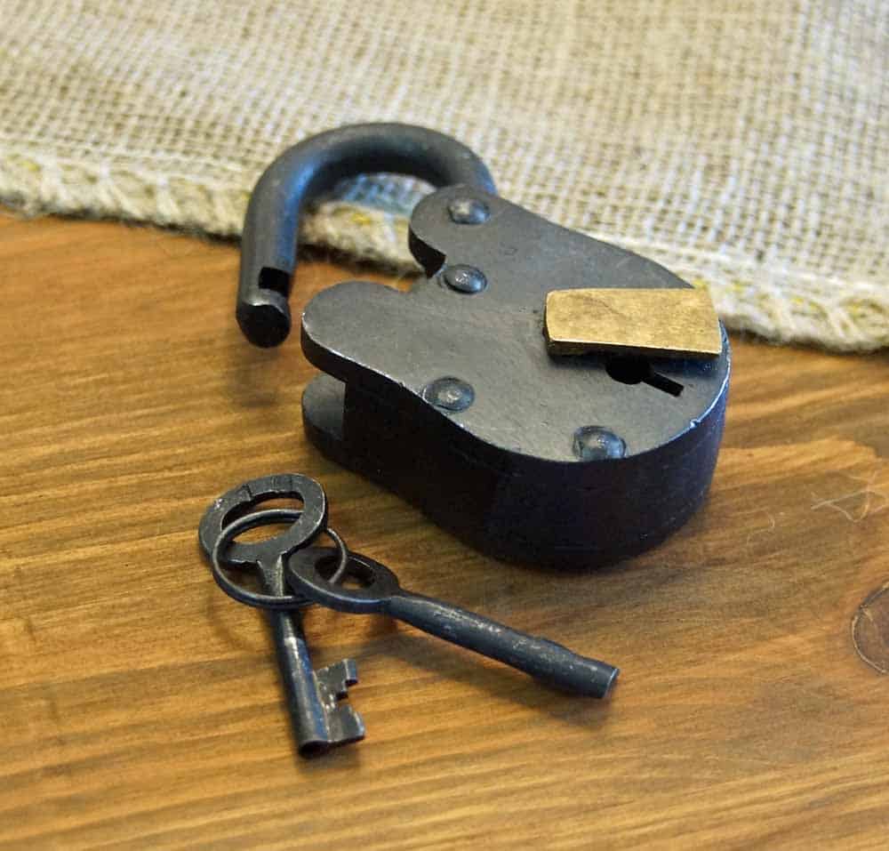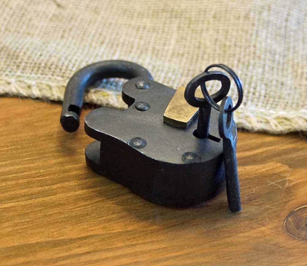 Kleines, funktionales (!) Vorhängeschloss inklusive zweier Schlüssel aus Stahl.
