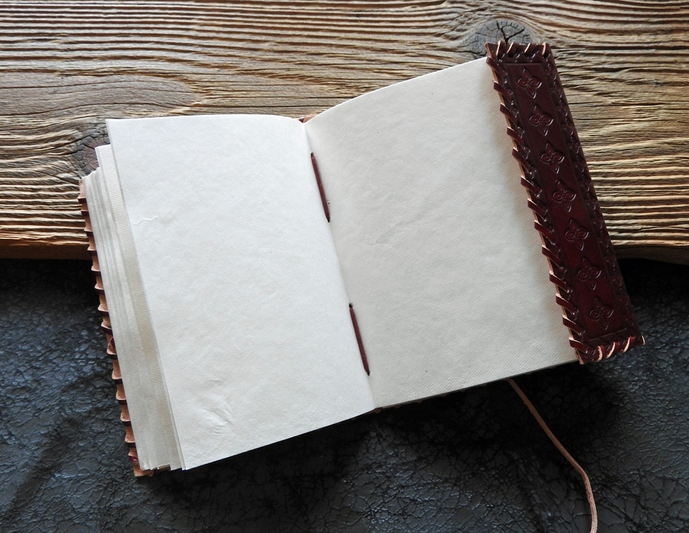 Material: Umschlag: Leder, Seiten: handgeschöpftes Papier