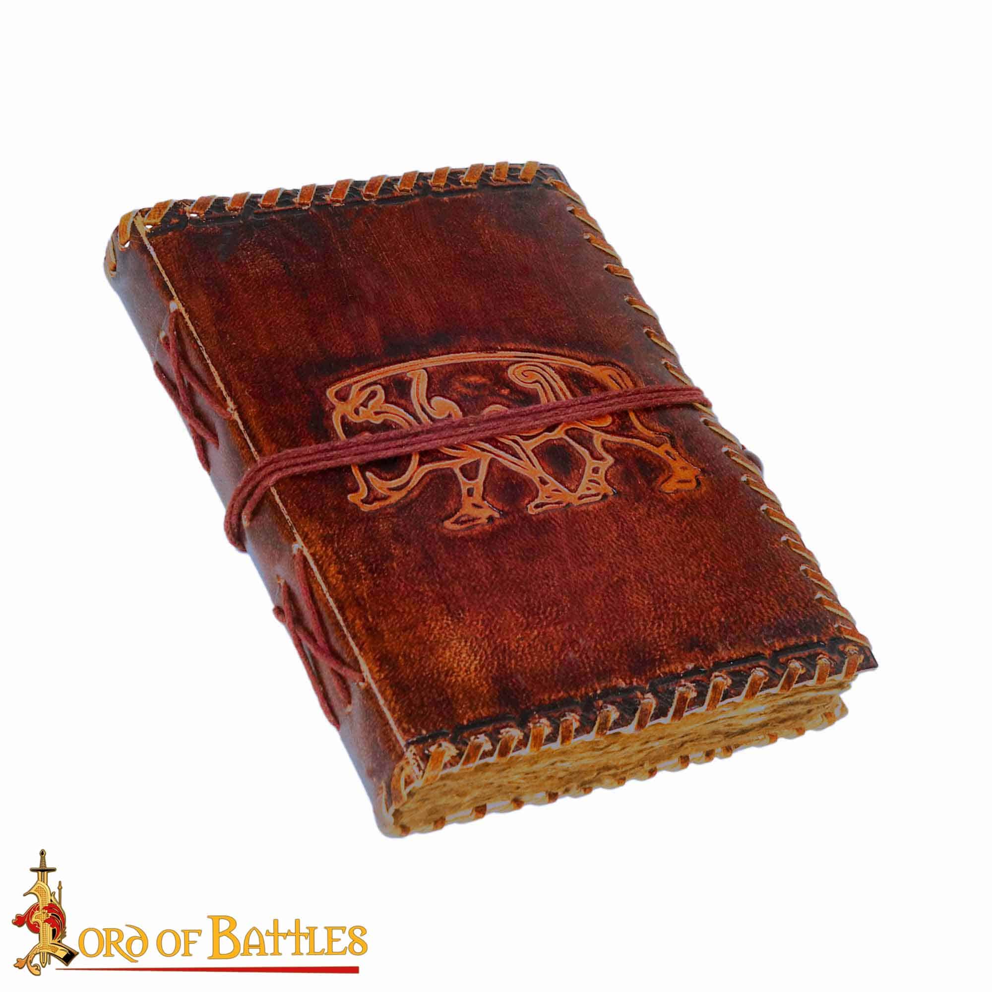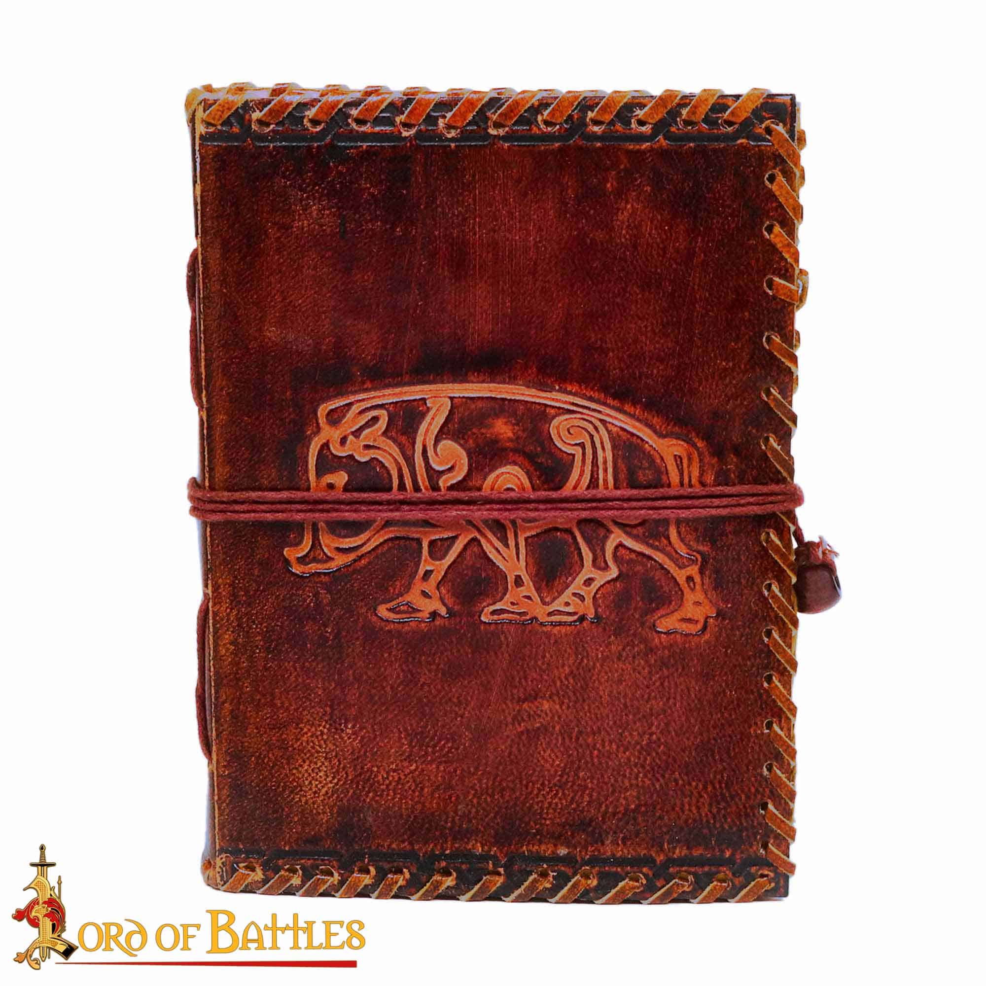 Dieses Notizbuch besteht aus handgeschöpftem Büttenpapier und einem Einband aus Leder mit einem eingeprägten Wildschwein.