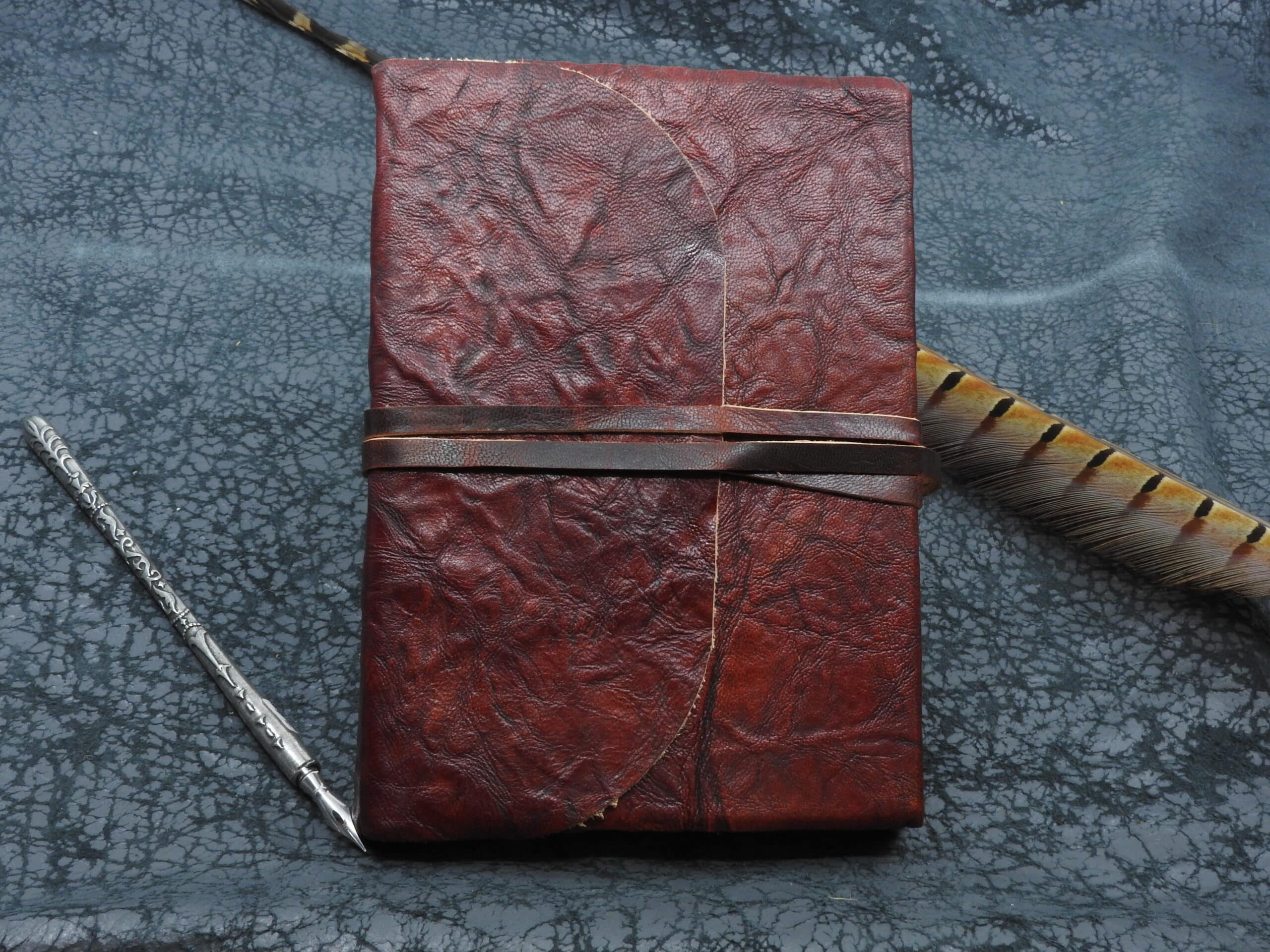 Dieses Notizbuch besteht aus handgeschöpftem Büttenpapier und einem Einband aus Leder.