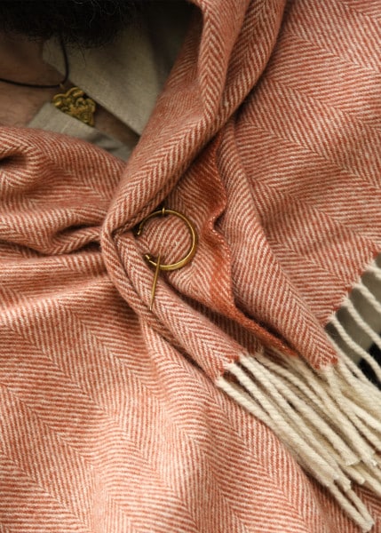 Das Tuch lässt sich vielseitig drapieren und mit einer Fibel über der Schulter oder Brust schliessen, so dass du stets volle Bewegungsfreiheit geniesst.