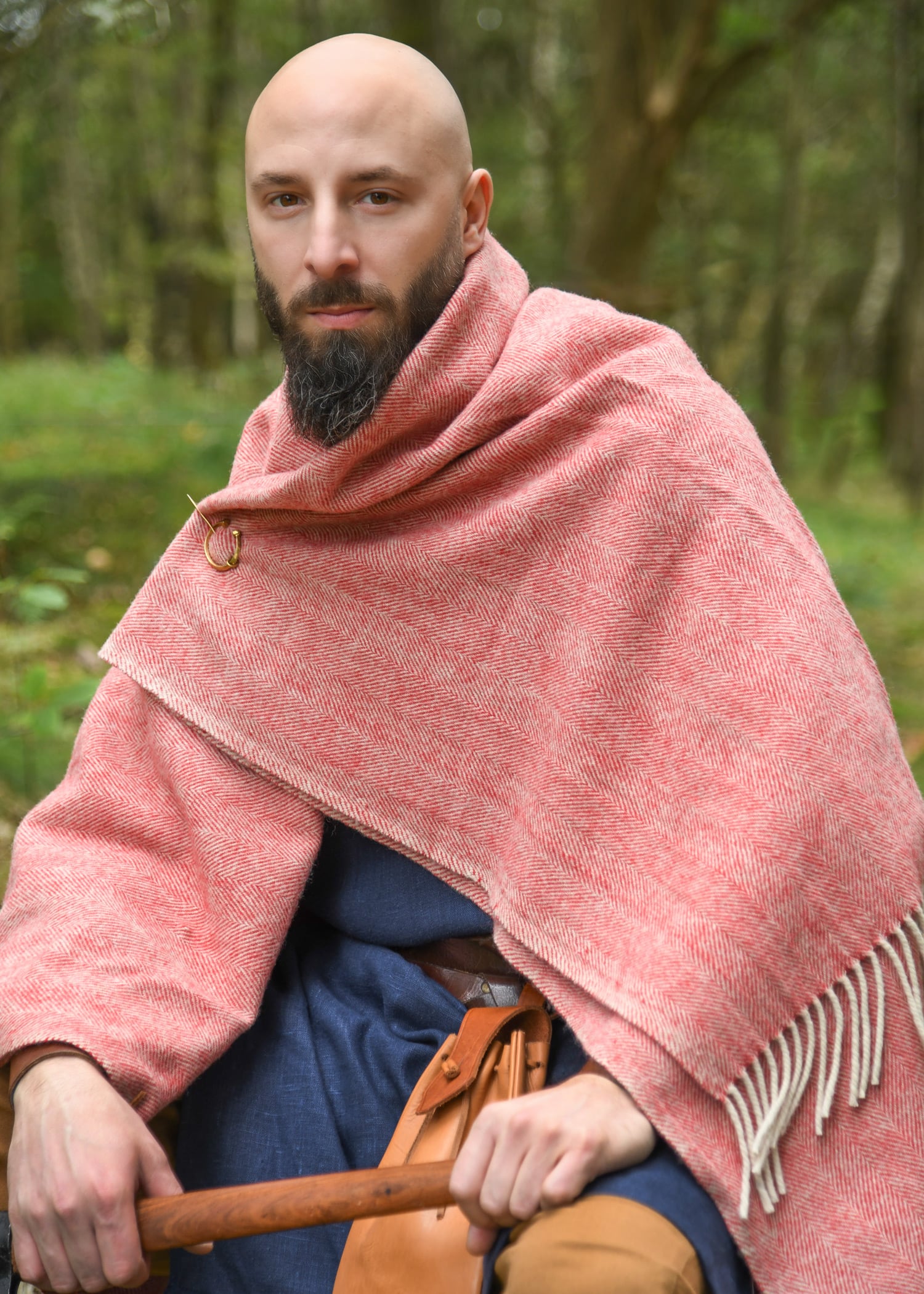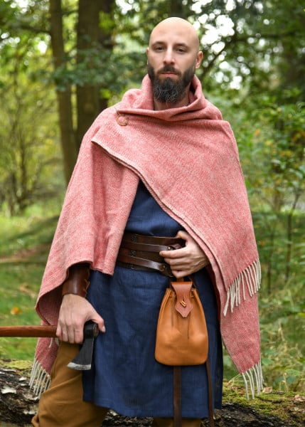 Im Frühen Mittelalter wie z.B. bei den Wikingern, kannte man oft noch keine Umhänge mit Kaputze. Man trug einen Mantel mit Ärmeln und einen Gugel mit Kaputze. Wenn man sich etwas umhängte, dann eine Rechteckige „Wolldecke“, die man mit einer Fibel (Brosche) meist an der Schulter geschlossen hat.