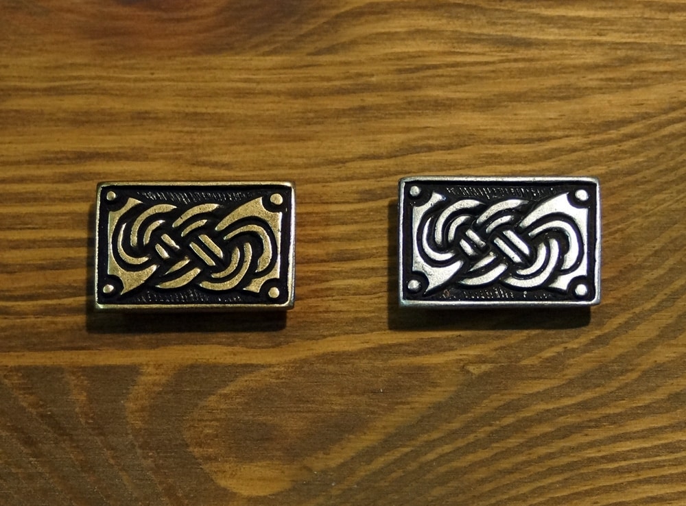Dieser markante Beschlag mit einem Motiv des 9. Jh. wird aus massivem Metallguss gefertigt.