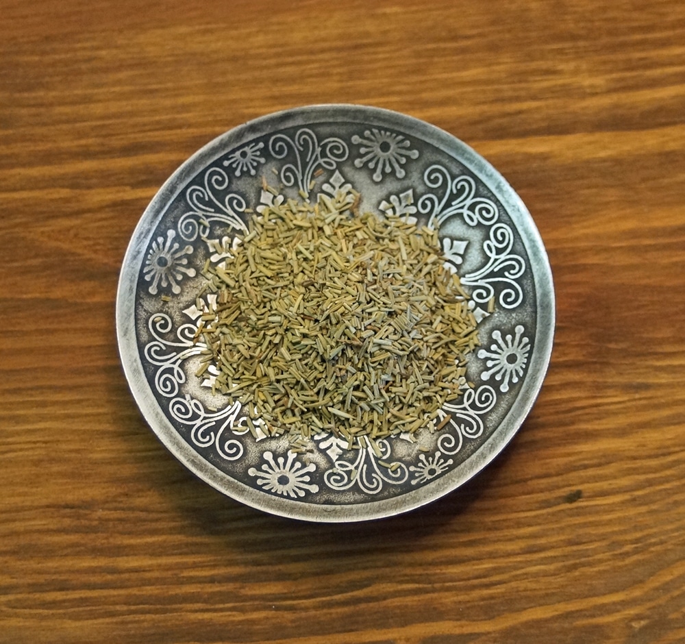Rosmarin verbrannt auf Kohle, entwickelt nach dem Rosmarinduft einen harzigen Geruch in der Luft der zur Stärkung des Gedächnisses und der Konzentration beiträgt.
