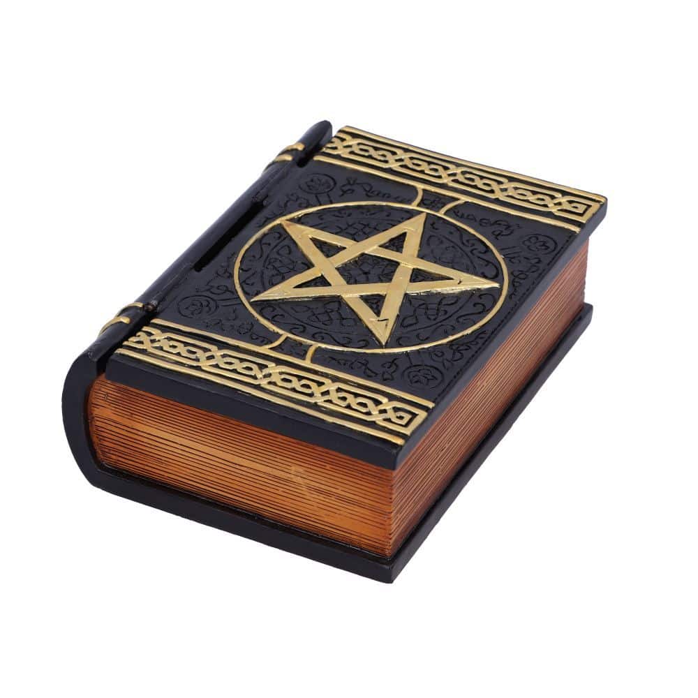 Diese wunderschöne Schatulle in Form eines Zauberbuchs versteckt kleine Gegenstände oder Briefe vor ungewollten Blicken. Natürlich kann auch der Lieblingsschmuck darin aufbewahrt werden, Räucherwaren oder Ritualgegenstände.