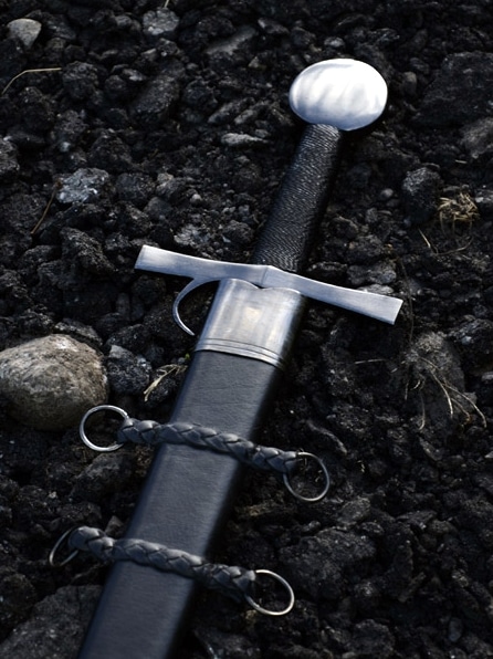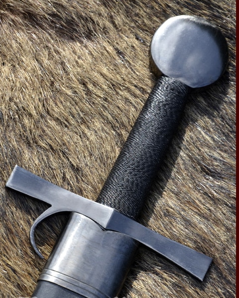 Diese perfekte, in reiner Handarbeit hergestellte Nachbildung des Royal Armouries Schwertes besitzt eine 87 cm lange, ölgehärtete Federstahlklinge mit durchgehender Angel, welche am Knauf vernietet ist.