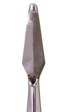 Handgeschmiedete, massive Lanzenspitze aus Stahl.