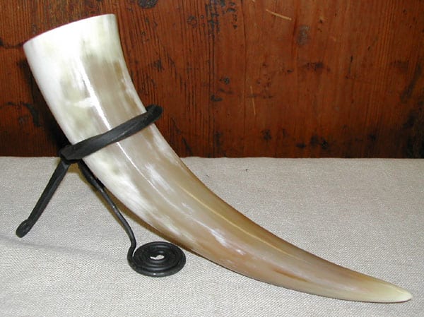 Das altgermanische, aus Rinderhörnern gefertigte Trinkhorn, wurde – neben seiner profanen Funktion als Trinkgefäß (Willkomm) – auch zu Trankopfern zu Ehren der Götter und Toten, der sog. „Minne“ verwendet. Im Zuge der Christianisierung fand es in Verbindung mit einer Heiligenlegende auch in das religiöse Leben des mittelalterlichen Menschen Eingang. Der hl. Cornelius soll nämlich einen Greifen von der Fallsucht geheilt und dafür von dem Fabelwesen als Dank eine seiner Klauen erhalten haben. Deshalb sind viele Trinkhörner, sog. Greifenklauen, mit Stützen in Vogelfußform ausgebildet. Der hl. Cornelius wird bei Epilepsie („Kornelkrankheit“) und Nervenleiden angerufen und gilt als Beschützer des Hornviehs. Sein Name wurde von „cornu“ (Horn) abgeleitet; als individuelles Attribut trägt er seit dem 14. Jahrhundert ein (Trink-) Horn.