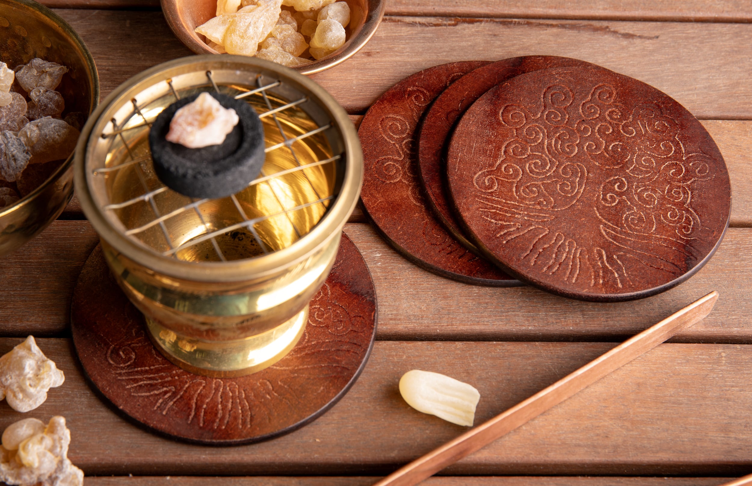 Insbesondere leichte Räuchergefässe aus Messing und Kupfer können während des Räucherns sehr heiss werden.