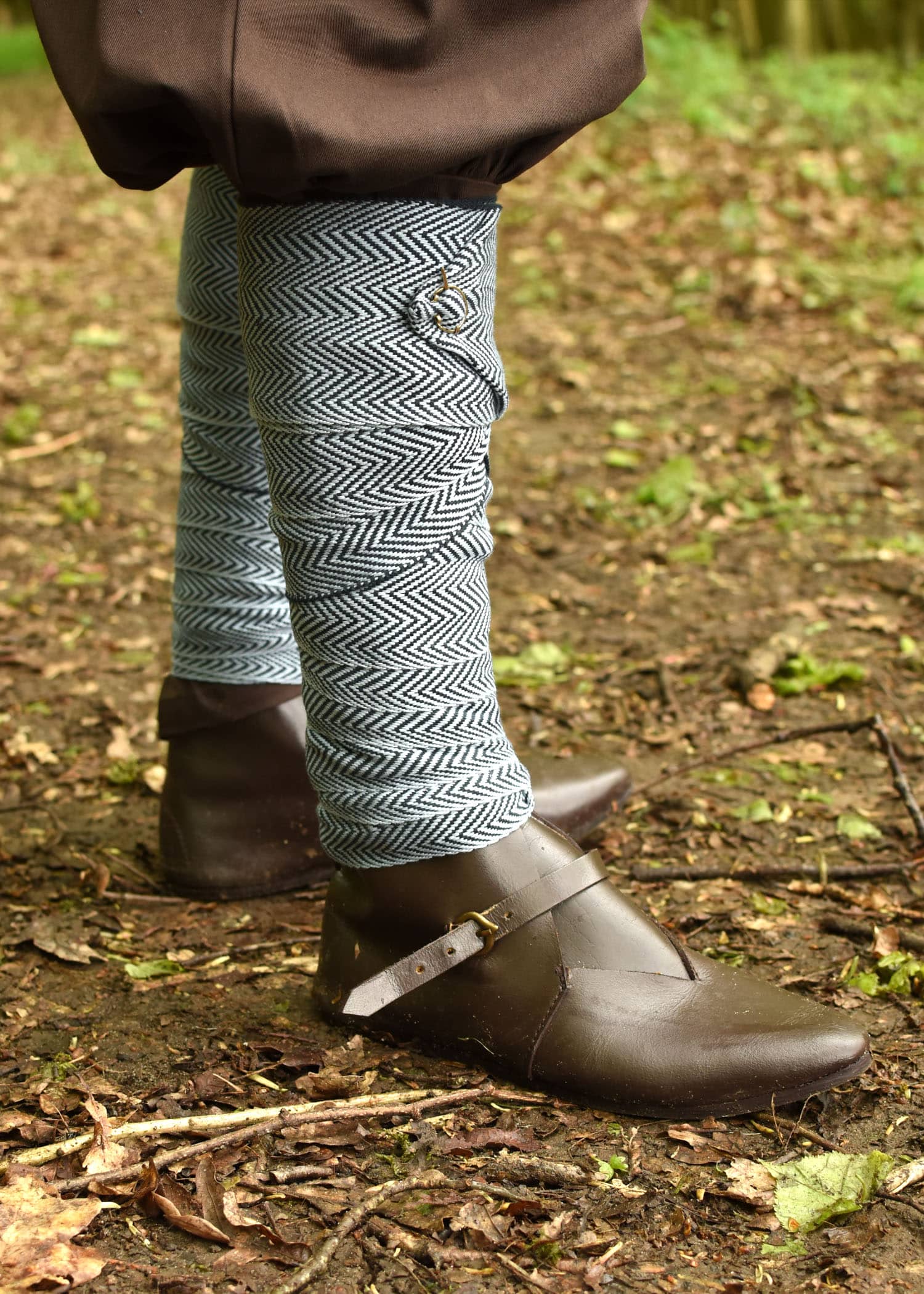 Wadenwickel wurden von den Wikingern benutzt um die untere Beinpartie warm zu halten. Zum befestigen benutzt man eine ganz kleine Fibel.