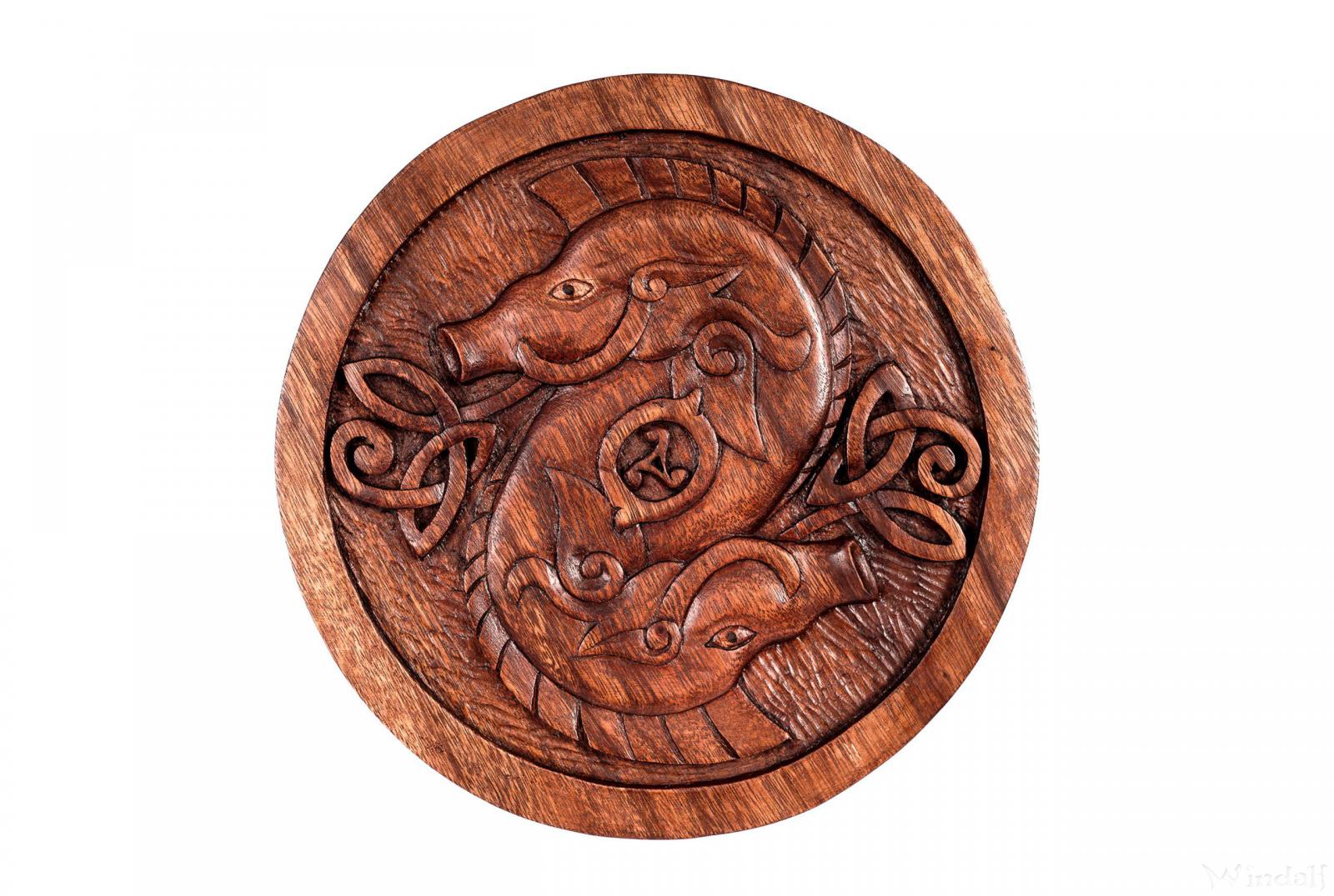Diese stilvolle Dekoration wurde von Hand aus Soarholz geschnitzt und verschönert jede Wand.
