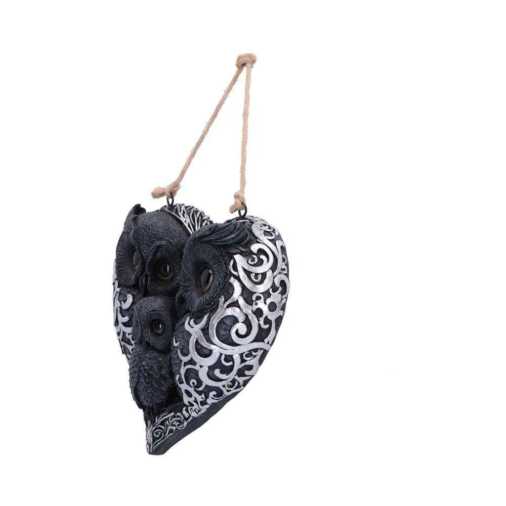 Die süsse Eulenfamilie formt ein herz, welches zum Beispiel perfekt an die Haustür passt. Die abgebildete Schnur ist im Lieferumfang enthalten.