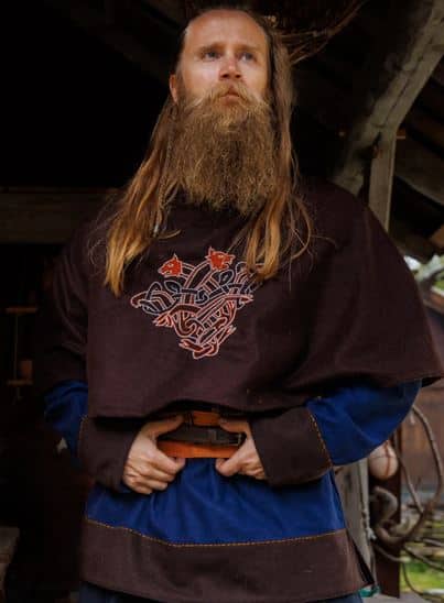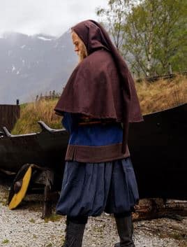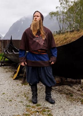 Ein rundum geschlossener, langer Wollgugel mit einer langen Kapuze und schöner Handstickerei!