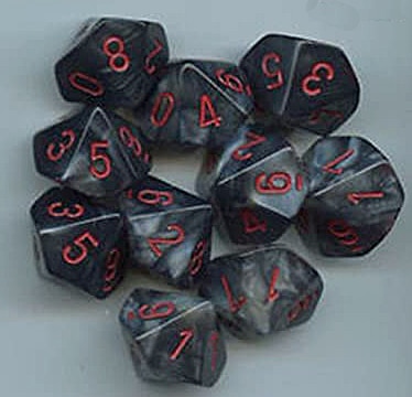 Geliefert werden 10 Stück 10-seitige Würfel mit den Zahlen von 1 bis 10.