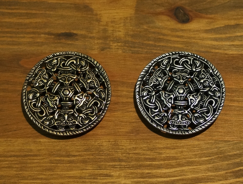 Dieser mittelalterliche Beschlag aus massivem Zamakguss ist eine schöne Zierde für jeden Gebrauchsgegenstand aus Leder, wie z.B. Taschen oder Gürtel.